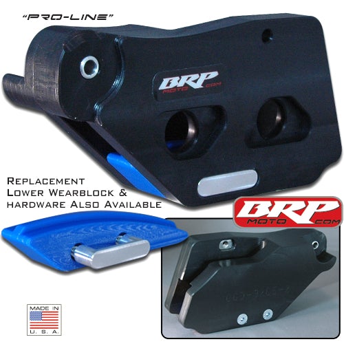 The Billet Racing Product Pro-Line Chain Guide offers increased Strength, superior durability, and improved performance in comparison to OEM and other after market chain guides. Our design provides improved chain guidance and reliability, even when riding in extreme conditions.