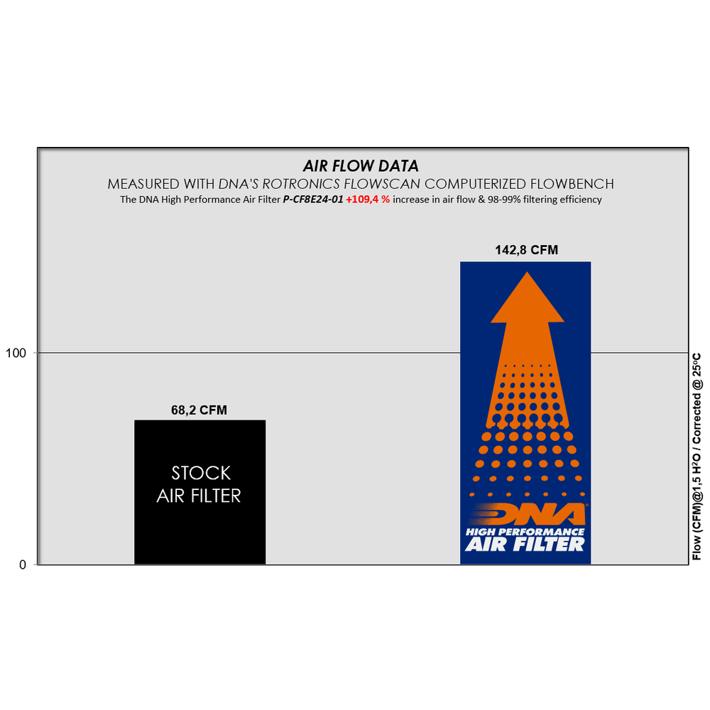 DNA High Performance Air filters help provide optimal flow and maximum engine performance and fuel efficiency through a world-class filtration design that removes 98% of air contaminants. Each filter is designed and manufactured to meet or exceed all original equipment operating specifications.