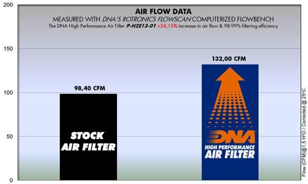 - The flow of this DNA Fcd filter is high, 34.15% more than the Honda stock paper filter!