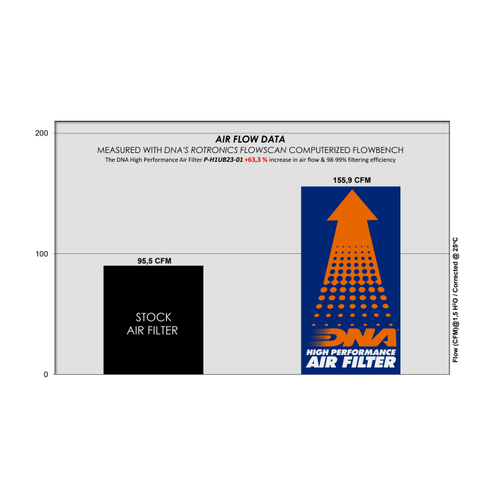 - DNA air filter flow: 155.90 CFM (Cubic feet per minute) @1,5”H2O corrected @ 25°C