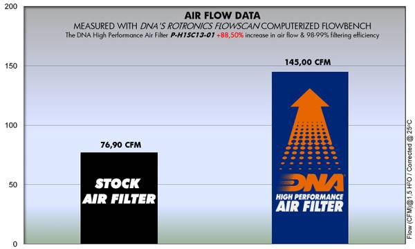 - The flow of this DNA Fcd filter is high, 88.50% more than the Honda stock paper filter!