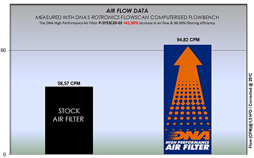 - The flow of this new DNA filter is +61.90% more than the stock filter!