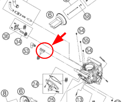 Carburetors on the KTM 950 have a 90-degree brass hose connectors that are fitted into the carbs with 3 orings. These orings are known to fail and leak.