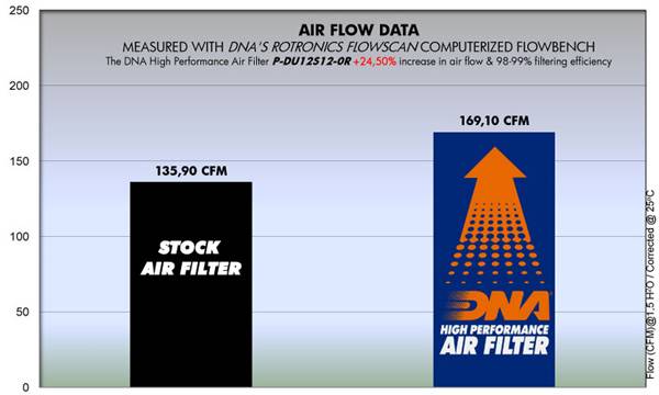 - The flow of this DNA Fcd filter is high, 24.50 % more than the DUCATI stock paper filter!
